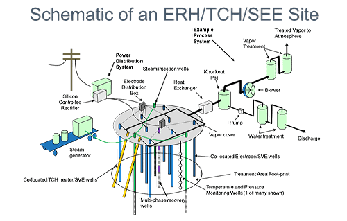 In today’s marketplace, the three main ISTR technologies are Thermal Conduction Heating (TCH), Electrical Resistance Heating (ERH) and Steam Enhanced Extraction (SEE). Combined thermal remedies may include: