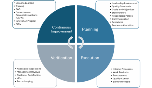 Our QMS is a comprehensive program that spans the full project lifecycle, from concept to completion, organized into four key phases: