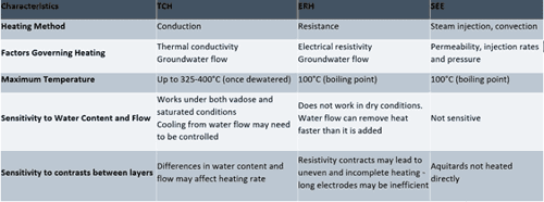 Understanding whether the contaminant is a volatile organic compound (VOC) that may require heating to 100°C or a semi-volatile organic compound (SVOC) which may require heating to upwards of 250 to 350°C will dictate whether only thermal conduction heating (TCH) is acceptable (>100°C) or another technology is suitable, such as electrical resistance heating (ERH) or steam enhanced extraction (SEE).