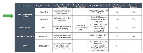 While low temperature thermal remediation will not work in every situation or for every remediation goal, when abiotic and biological degradation is the targeted mechanism of removal, either natural or with amendments, low temperature thermal should be considered as a potential remediation technology. As described above, low temperature thermal provides many advantages and may just be the best choice for a project that aims to reduce remediation timelines while lowering cost and taking a big step toward more sustainable remediation.