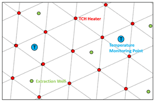 Unlike other thermal technologies, the TCH heater pattern is fairly flexible and can be optimized based on site constraints, such as underground utilities, existing structures, etc.
