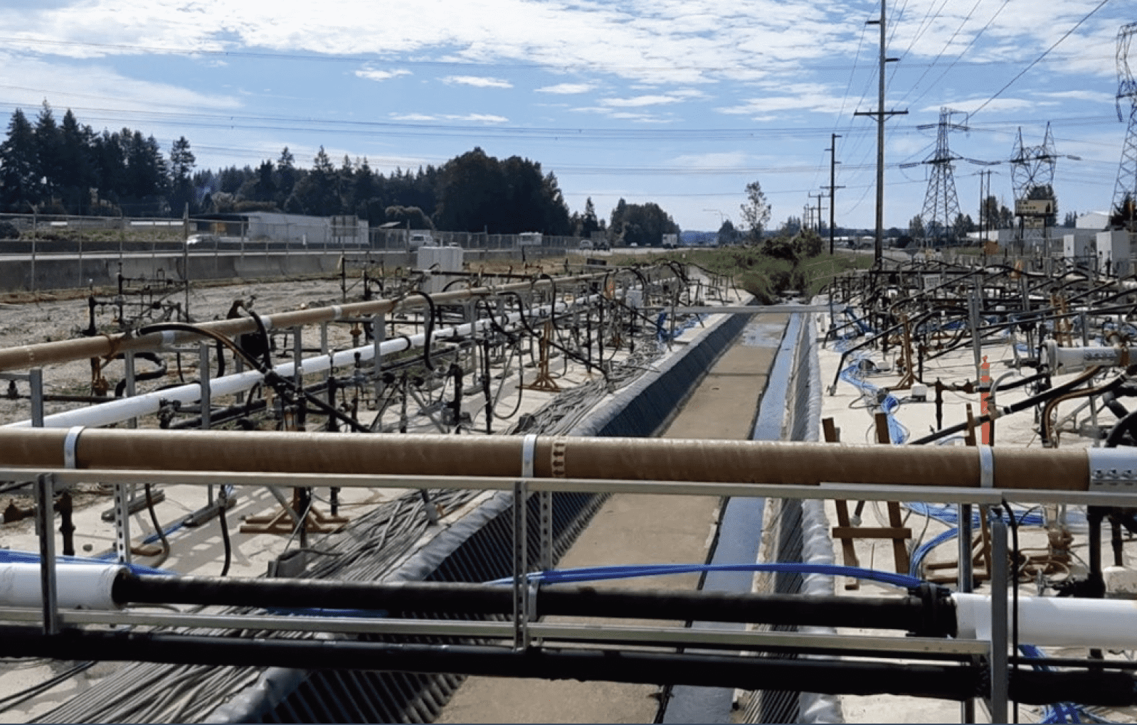 Challenges: The site was located between a major interstate and a service road requiring trenching and installation of utilities across the road to the location of the extraction and treatment system and steam boiler. The creek running through the source area had to be isolated and insulated to protect it during heating (temperature impacts and COC migration). The ERH/SEE design included multiple steam injection and ERH intervals combined with co-located vapor extraction wells, MPE wells, and horizontal vapor extraction wells, and an insulated vapor cover integrated into a stream relocation channel. Once Phase 1 was complete, the creek was restored to preexisting conditions.