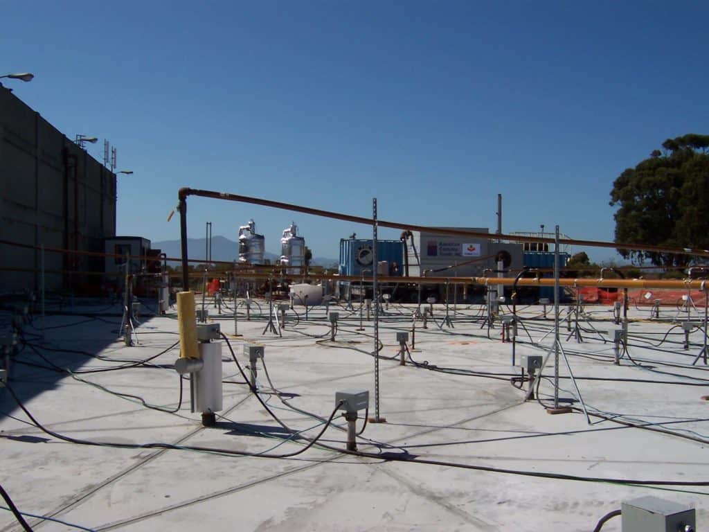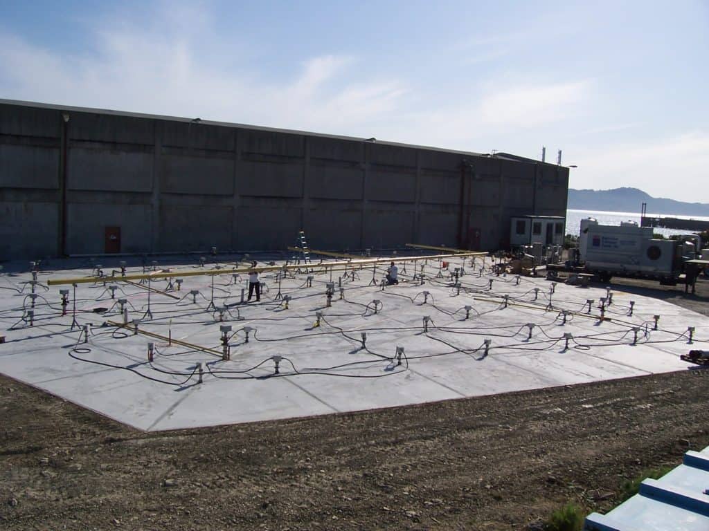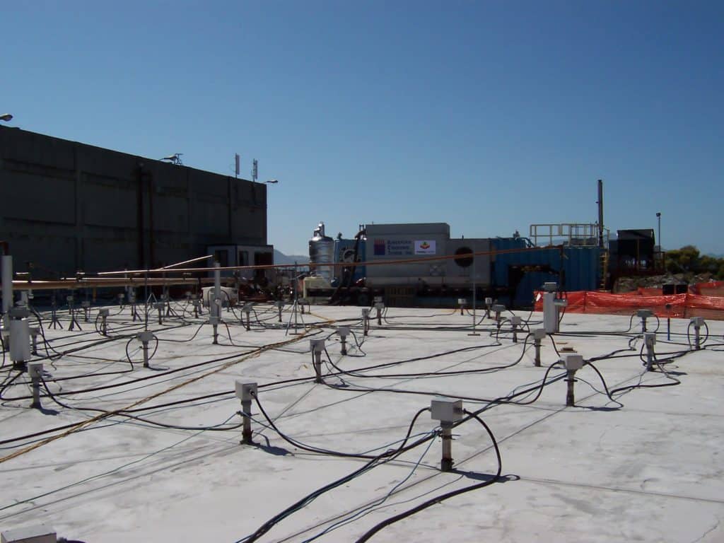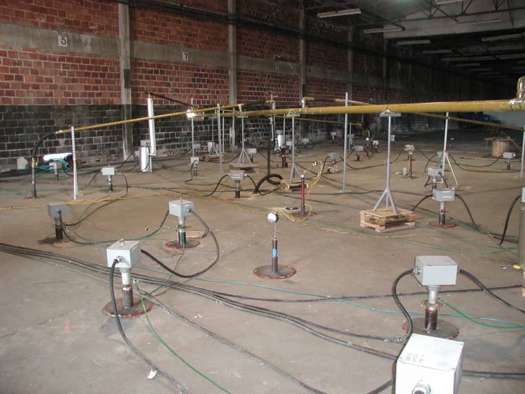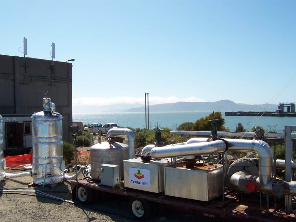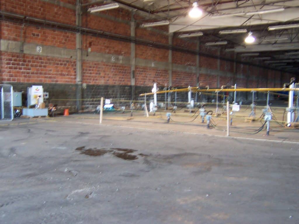 Challenges: A small portion (~1,400 ft2) of the target treatment zone (TTZ) was underneath a 90,000 ft2 warehouse built on concrete pilings. The warehouse was not demolished until after the remediation part was complete so TerraTherm installed wells inside the warehouse to treat the soil below the building.